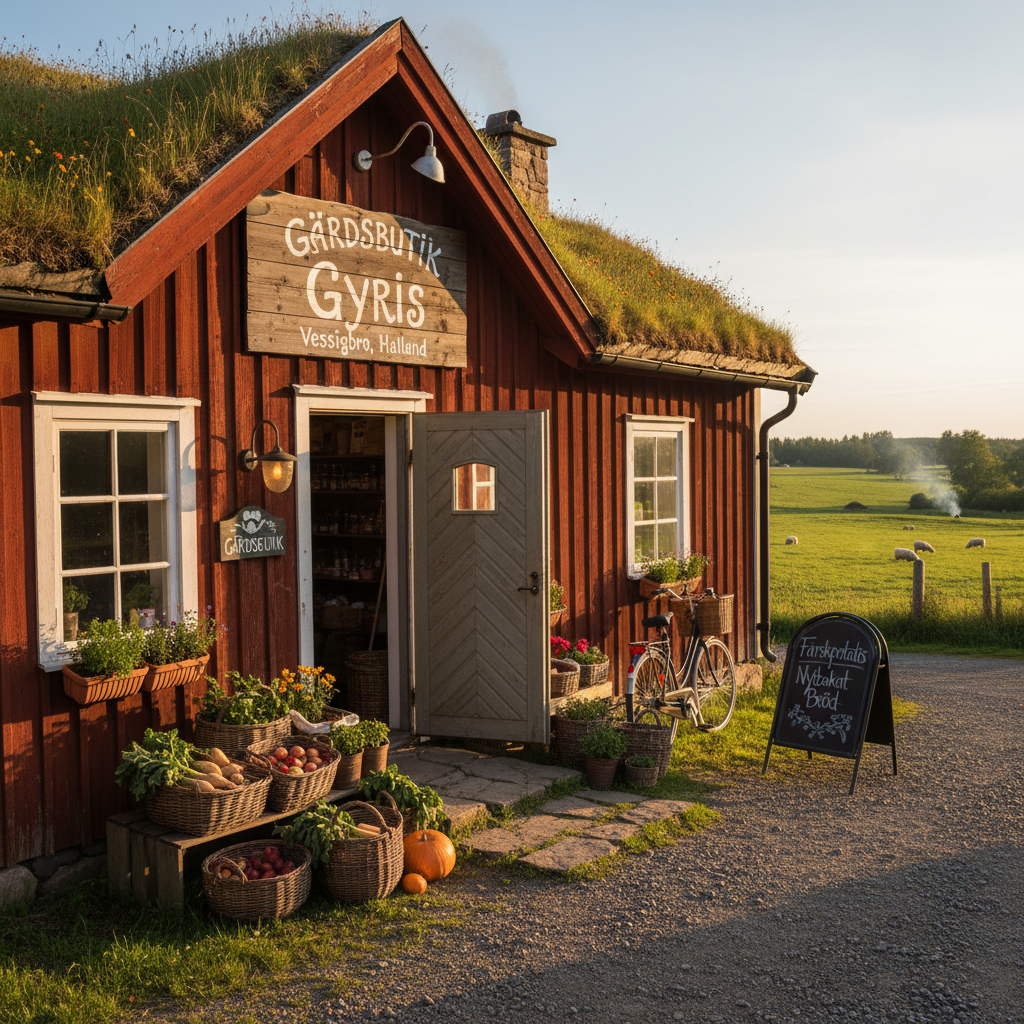 Gårdsbutik Gyris är en gårdsbutik i Vessigebro som erbjuder lokalproducerade varor och gårdens egna produkter.