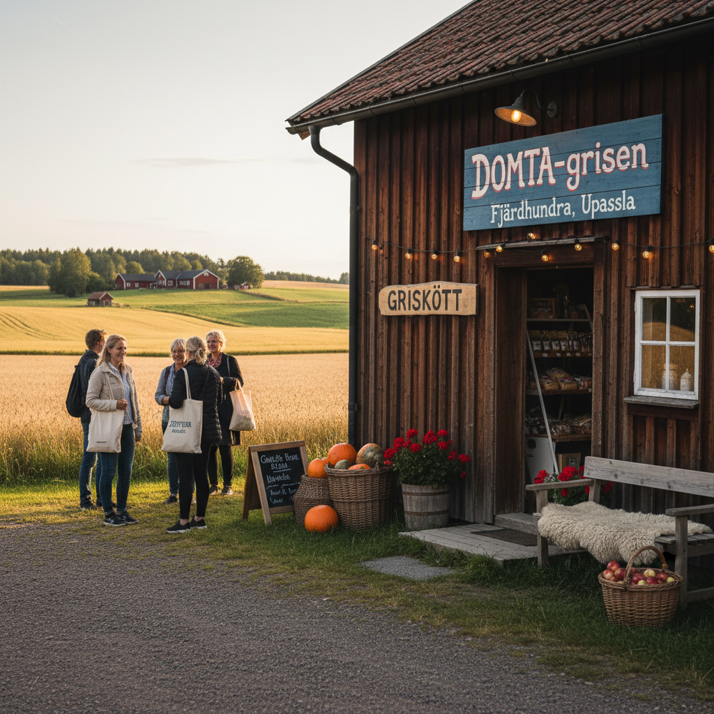 DOMTA-grisen är en grisproducent i Fjärdhundra. Gården föder upp grisar och erbjuder lokalproducerat griskött och charkuterier.